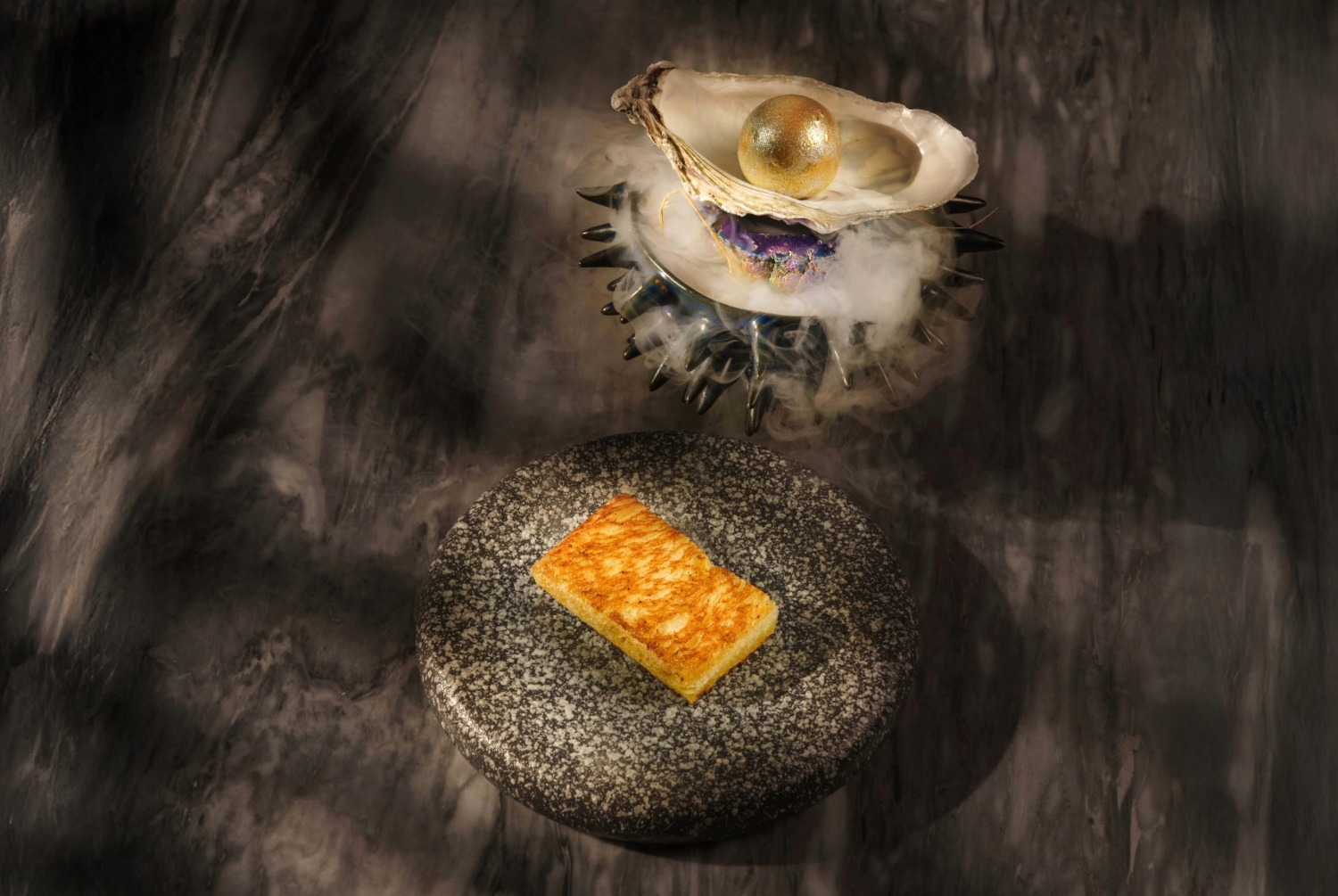 A silky pâté of mussels and foie gras — rich, deep, and noble. A course with a long finish that slows time and sets a more serious tone for the evening.